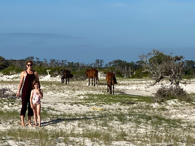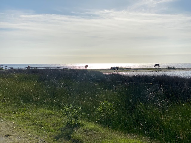 Following the wedding, we headed further north and spent a few magical days at the campground on Cedar Island, NC… right next to the ferry boat loading dock. The wild horses run free here, there are miles and miles of empty beaches, a perfect dock for fishing, and you can watch the ferry boats come and go all day. Perfection. From there we camped in Ocracoke and then Hatteras, two of my most favorite places to go. The isolation of this little island chain hanging out deep in the Atlantic gives me all the feels. Worries of COVID seemed so far away in such a remote location. We felt sheltered from the horrors swirling everywhere else.