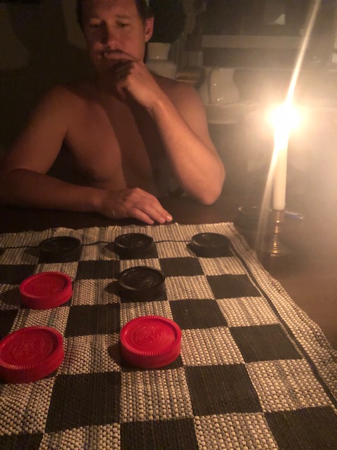 Some friendly, not at all competitive games of checkers…..